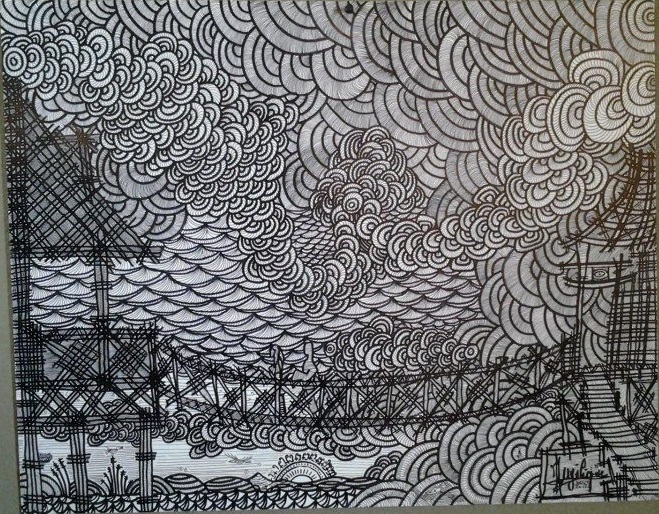 | trait (“line”) and empilage (“piling up”) and carré (“square”) mix |
